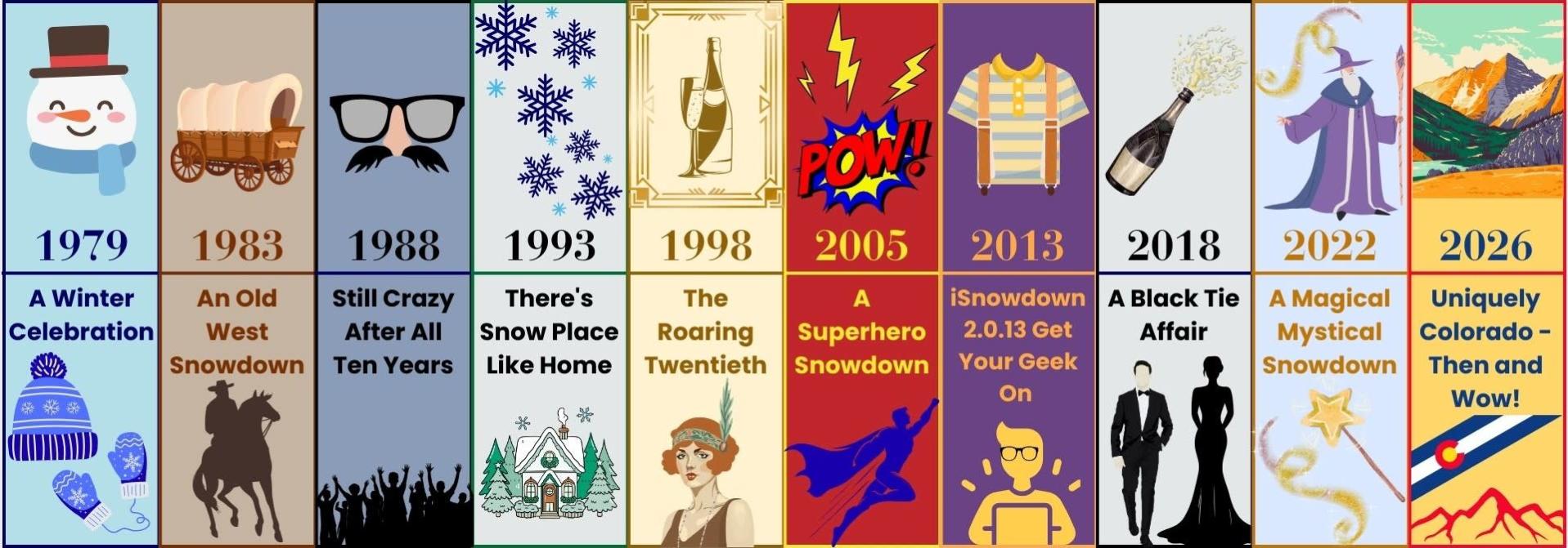 Whether you show up as 1979’s Winter Celebration, 1998’s Roaring Twentieth, 2013’s Get Your Geek On, 2018’s Black Tie Affair, or the 2026 Colorado Then & WOW look, if it’s part of Snowdown history, you’re good to go.